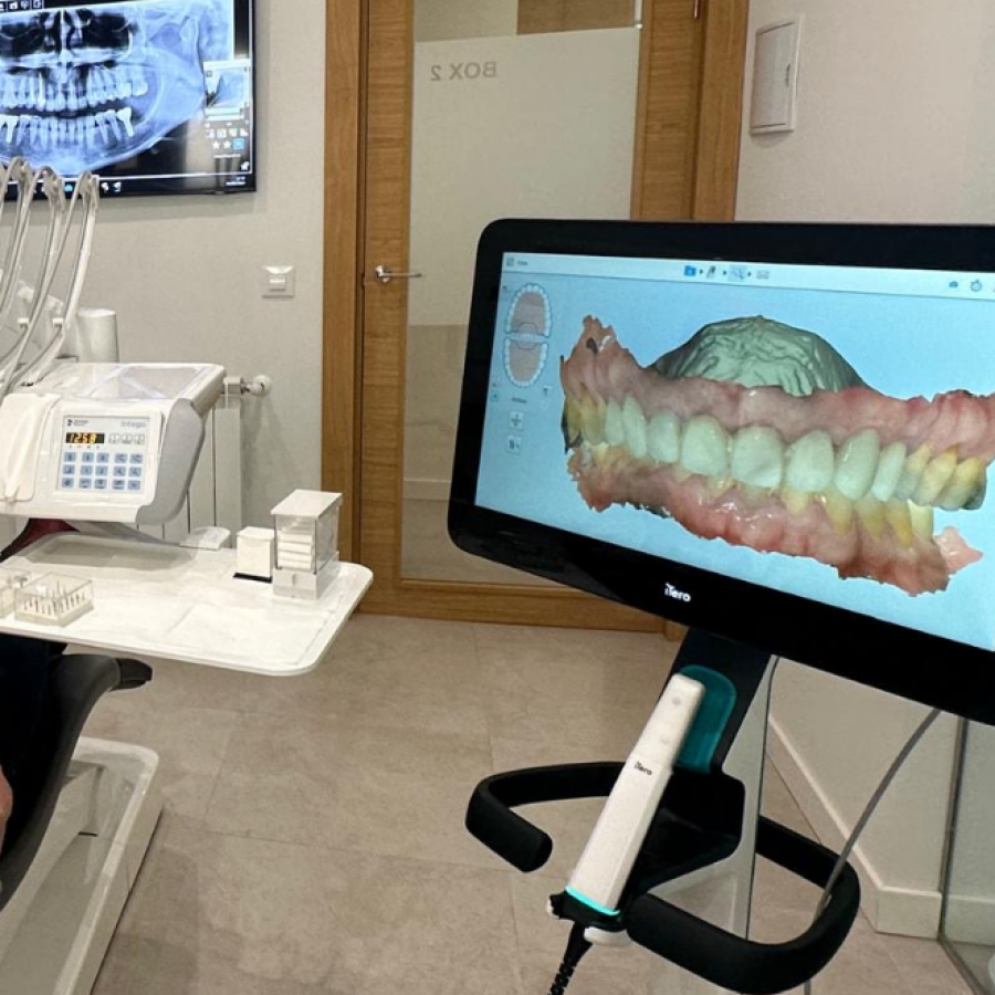 Como medio de diagnóstico nos permite una visión detallada en 3D de la boca de nuestros pacientes. Valorar la salud dental, la alineación de los dientes, la salud de las encías, la oclusión, los tratamientos que se han llevado a cabo en su boca anteriormente y con todo ello, junto a otras pruebas complementarias como la radiografía, realizar un diagnóstico y un plan de tratamiento para el paciente.